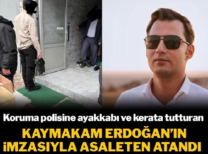 Cuma namazı çıkışı koruma polisine ayakkabıları ile bir kerata tutturan kaymakam vekili Mert Can Canga'nın kaymakamlık görevine asaleten atamaları yapıldı.