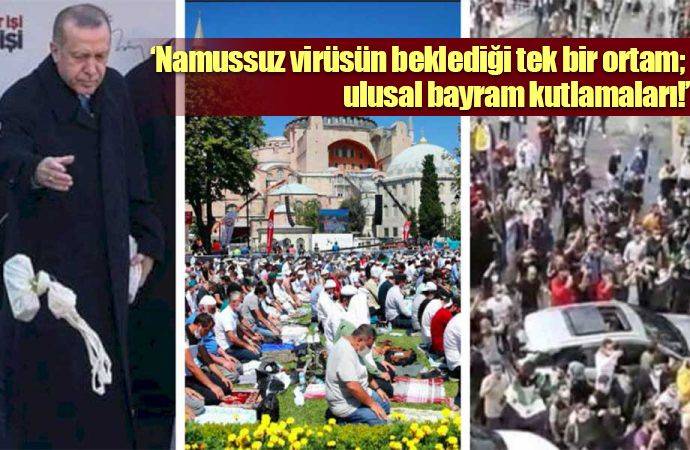 Çölaşan, “Düzmece toplu açılış törenlerinde de durum aynı, ama o namussuz virüsün beklediği tek bir ortam var… Ulusal bayram kutlamaları ve iktidardan yana olmayan her çeşit gösteriler! Pusuda bekleyen sayın virüs işte o ortamlarda ortaya çıkıyor, bulaşıyor, yapacağını yapıp gidiyor” ifadelerini kullandı.