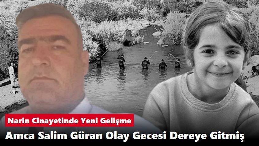 Diyarbakır Cumhuriyet Başsavcılığı’nca hazırlanan iddianamede, tutuklu amca Salim Güran’ın Narin’in kaybolduğu 21 Ağustos gününün gecesi saat 22.35’te cansız bedeninin bulunduğu Eğertutmaz Deresi’ne geldiği tespit edildi. Dava dosyasındaki bilirkişi ve HTS analiz raporu kapsamında olay günü, bir aracın saat 22.35 sıralarında cesedin bulunduğu yere doğru hareket halinde olduğu, saat 22.48'de cesedin bulunduğu alanda durduğu, saat 22.55 sıralarında ise dönüşe geçtiği tespit edildi. Yapılan incelemede, cesedin bulunduğu yere gelen kişinin Salim Güran olduğu belirtildi.