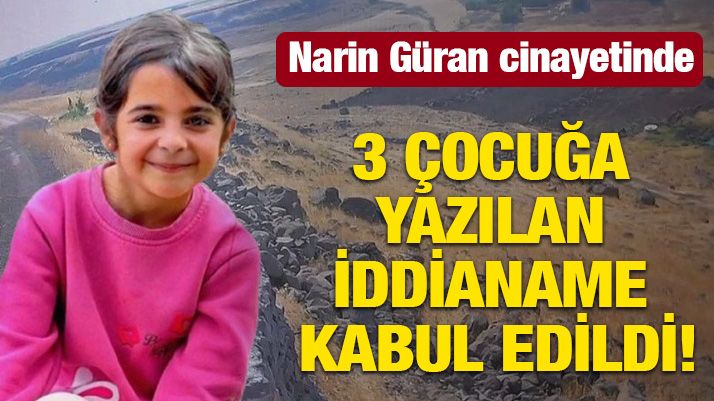 Diyarbakır'ın Bağlar ilçesine bağlı Tavşantepe köyünde kaybolduktan 19 gün sonra cansız bedeni bulunan Narin Güran davasında 3 çocuk hakkında hazırlanan iddianame kabul edildi. 3 şüpheli 2. Çocuk Mahkemesi tarafından yargılanacak. İlk duruşma 20 Mart'ta görülecek.