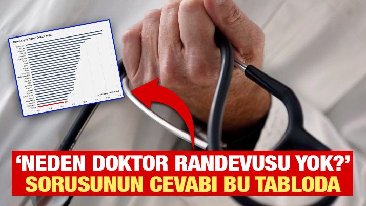 CHP'li Karatepe, "Neden devlet hastanelerinde randevu bulamıyoruz? Neden doktorlar 5 dakikada bir hasta bakmaya zorlanıyor?" sorularının cevabının söz konusu tabloda olduğunu belirtiyor: