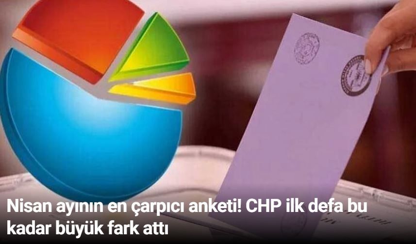 Son olarak Ankara Araştırma ve Danışmanlık ‘AnkAr’ şirketinden çarpıcı bir anket geldi. 48 Nisan tarihleri arasında gerçekleştirdiğimiz ''Seçmen Gündemi'' araştırmasında CHP yüzde 33,7 ile birinci parti olurken AKP ise yüzde 26,7 ile ikinci parti oldu. Bu sonuçla CHP ile AKP arasında 7 puanlık bir fark oluşurken CHP ilk defa bu kadar arayı açmış oldu.