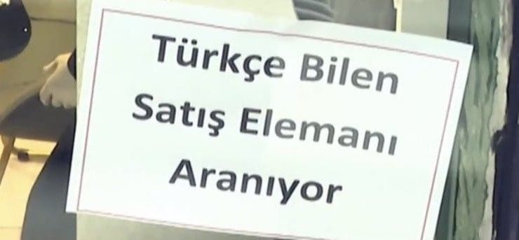 İstanbul'daki tekstilin kalbi olarak nitelendirilen Nişantaşı, Osmanbey'deki bir mağazanın vitrininde bulunan "Türkçe bilen eleman aranıyor" ilanı gündem oldu. Çevredeki çoğu tekstil mağazasının operatör, dikişçi ya da manken aradığı ilanların arasında Türkiye'de Türkçe bilen eleman aranıyor olması adeta herkesin ağzını açık bıraktı.