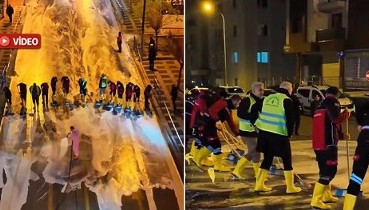 AKP'li Ümraniye Belediyesi su kıtlığını unuttu! Kurtlar Vadisi müziği ile sokakları foşur foşur yıkadılar