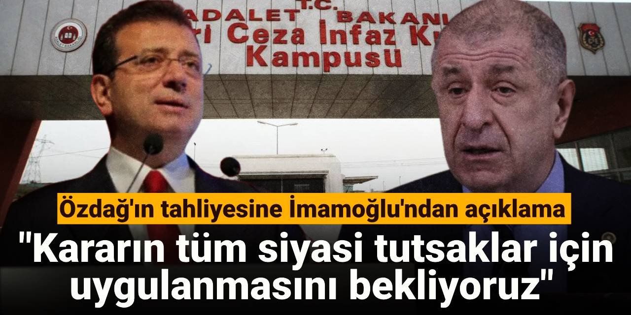 İstanbul Büyükşehir Belediye Başkanı ve CHP'nin cumhurbaşkanı adayı Ekrem İmamoğlu, Özdağ'ın tahliye edilmesine ilişkin sosyal medya hesabı üzerinden yaptığı paylaşımda şu ifadeleri kullandı: