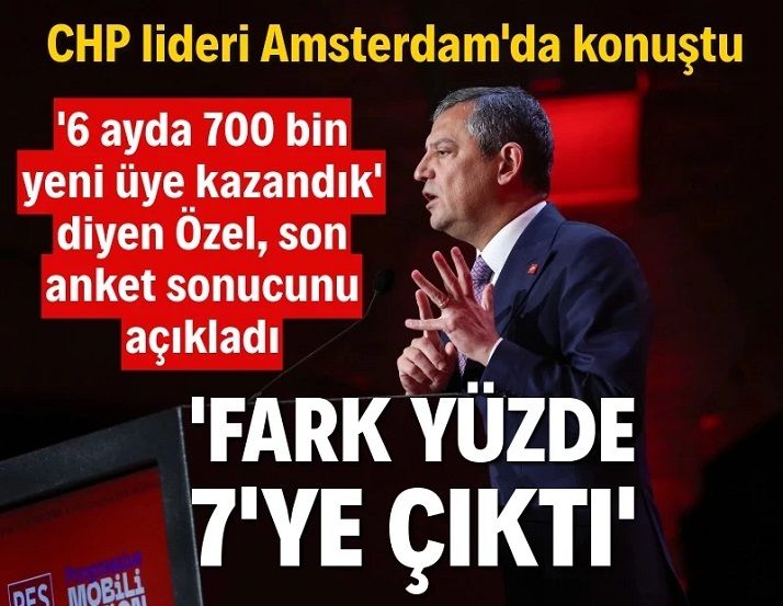 Özel, şu anda CHP'nin AKP'den yüzde 7 oy ile önde olduğunu açıkladı. CHP'nin oy oranının yüzde 41 olduğunu belirten Özel şunları ifade etti: