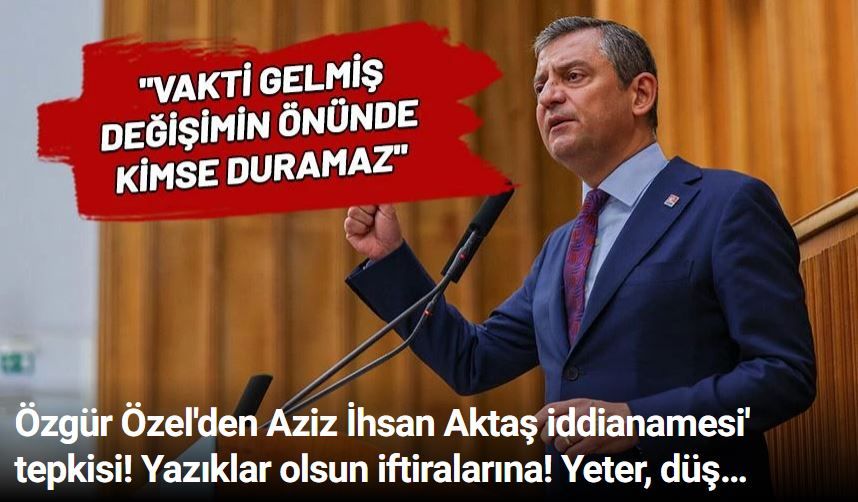 'Aziz İhsan Aktaş iddianamesi'ne tepki gösteren Özel "Bakın 113 yerde söylediği her bir şey üzerine bunu kanıtmış gibi kabul edip duydum dediği sözü birilerine iftira attırıyorlar. 104 kez iddianamede üşenmedik saydık "olabilir "geçiyor. 45 kez "duydum" geçiyor. 50 kez "düşünüyorum" geçiyor. Ve kanıt diye söyledikleri hiçbir şey kanıt değil. Ortalıkta sadece itirafçı denilen iftiraya zorlanan kişilerin ifadeleri var. Bakın rüşvet verildiğini düşünüyorum. Vereni söyle. Bir tane ben rüşvet verdim diyen yok. Birinden alınmış rüşvetin kanıtı yok. Paranın gittiği yer yok. Bir tane yat resmi koymuş oraya." dedi