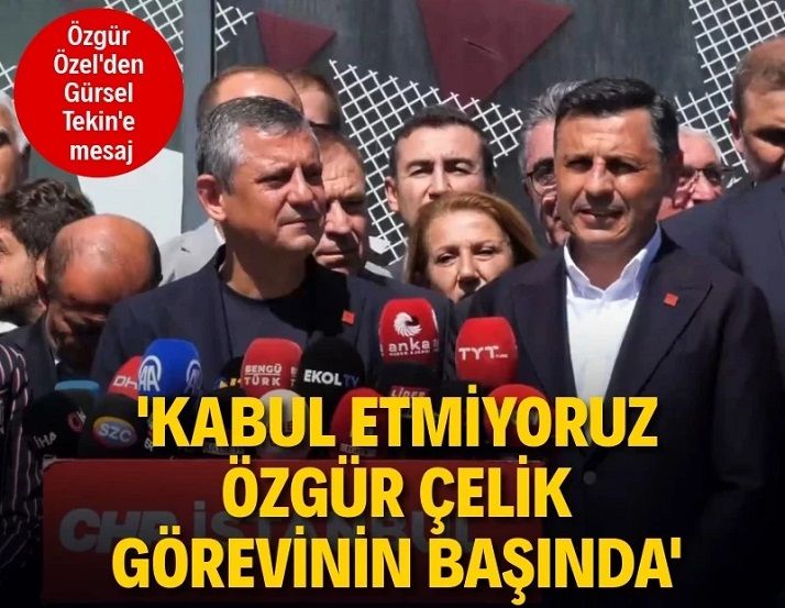 Özgür Çelik'le birlikte kürsüye çıkan Özel, geçici olarak il başkanlığına atanan Gürsel Tekin'e de sert mesajlar vererek şunları söyledi: