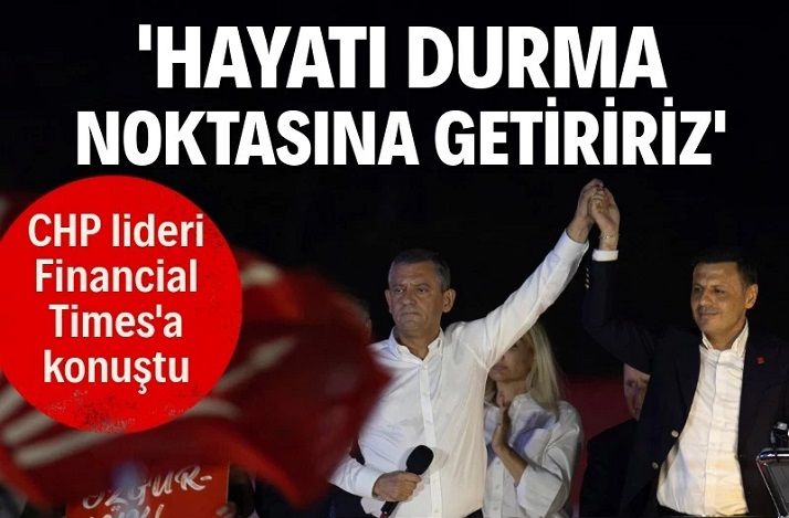 Partisine yönelik baskılarla ilgili İngiliz Financial Times gazetesine konuşan CHP Genel Başkanı Özgür Özel, baskılar sürerse “hayatı durma noktasına getirecek” kapsamlı protestolar ve hukuk mücadelesi başlatacaklarını açıkladı.