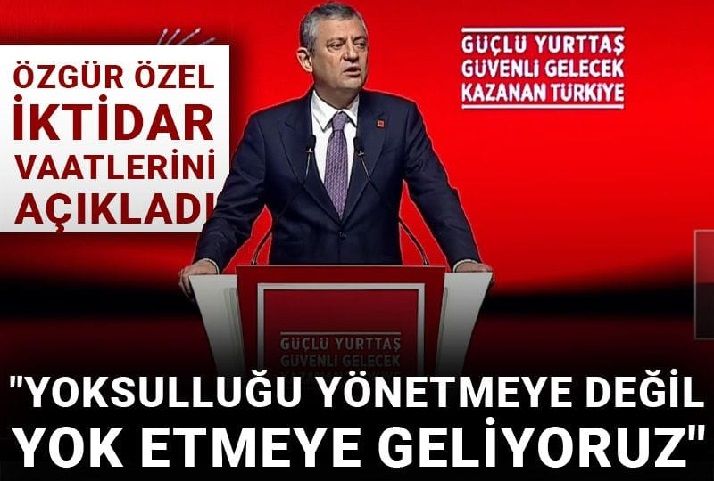 Sosyal devlet anlayışına vurgu yapan Özel, "Güçlü sosyal devlet anlayışımızla kimseyi geride, biçare bırakmayacağız. Biz yoksulluğu yönetmeye değil, yoksulluğu yok etmeye geliyoruz. Temel Vatandaşlık Geliri ile kimse yoksulluğa terk edilmeyecek. Sosyal yardımları hak ettiği için, bu ülkenin vatandaşı olduğu için daha fazla ve daha adil dağıtacağız. Yardım almak için kimse birilerinin tanıdığı olmak ya da bir partiye üye olmak zorunda olmayacak" ifadelerini kullandı.