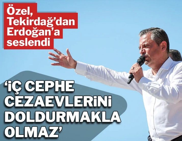 Gazeteci Fatih Altaylı'nın tutuklanmasına da tepki gösteren Özgür Özel, "Fatih Altaylı'yı bir cümlesinden tutuklayıp hapse attılar; yanlış yaptılar. Cezaevlerinin iç avluları doldurularak iç cephe güçlendirilmez. İç cephenin gücü demokrasiden geçer" dedi.