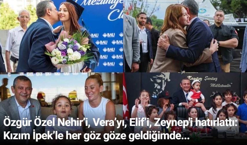 CHP Genel Başkanı Özgür Özel, "Kızım İpek’le her göz göze geldiğimde, yalnızca kendi evladımı değil, bu memleketin tüm kız çocuklarını görüyorum" diyerek duygusal bir paylaşımda bulundu. Özel paylaşımında, hayatını kaybeden Manisa Büyükşehir Belediye Başkanı Ferdi Zeyrek'in kızları Nehir, Elif ve Zeynep ile Gezi tutuklusu Tayfun Kahraman'ın kızı Vera'ya da yer verdi.