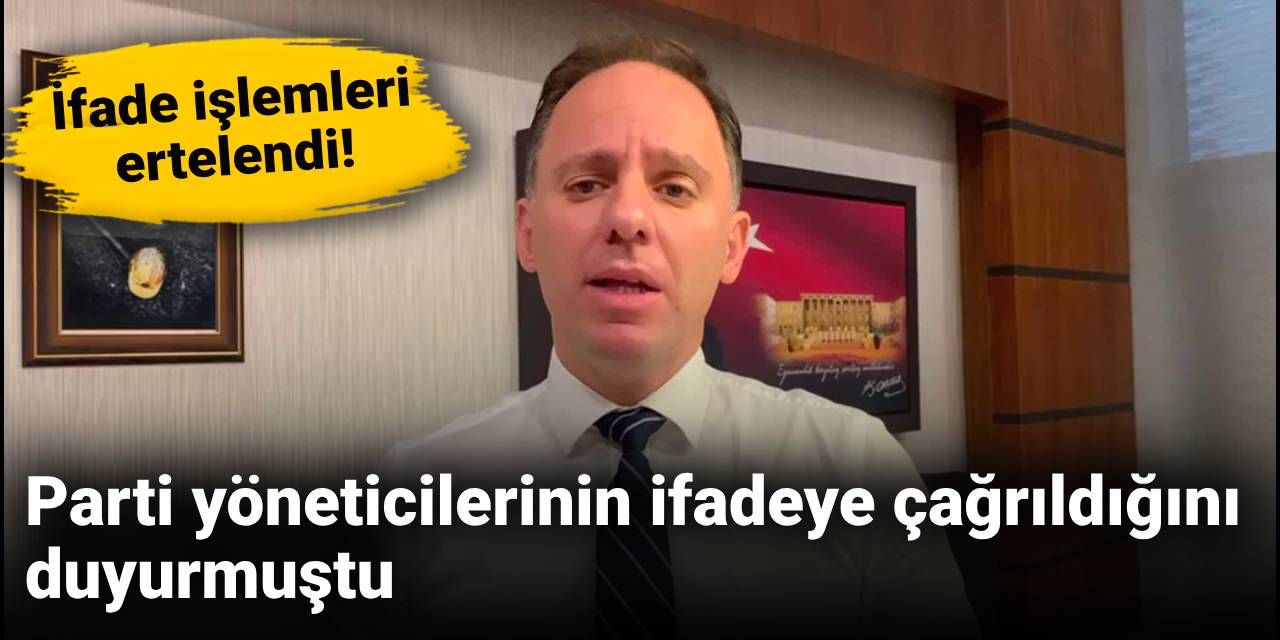 "Cumhurbaşkanı adayımız Ekrem İmamoğlu’na destek yürüyüşüne katıldıkları için yarın emniyete çağrılan parti yöneticilerimizin ifade işlemlerinin ertelendiği emniyet tarafından bildirildi. Sürecin takipçisiyiz. Ya hep beraber ya hiçbirimiz"