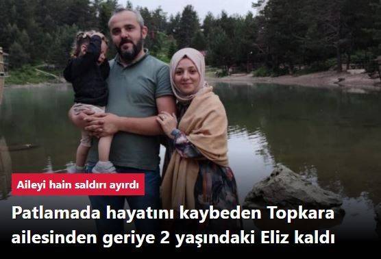 Beyoğlu İstiklal Caddesi'nde dün saat 16.20'de şiddetli bir patlama meydana geldi. Terör saldırısı olarak değerlendirilen acı olay yürekleri yaktı. Hain saldırıda 6 kişi hayatını kaybederken 81 kişi de yaralandı. Patlama sırasında caddeden geçen Adem Topkara ile eşi Mukaddes Elif Topkara da hayatını kaybetti.