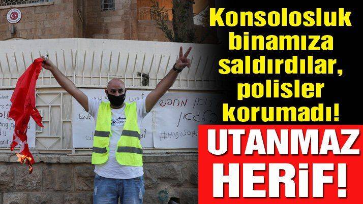 Ayasofya’nın ibadete açılma kararı sonrasında dün Kudüs’teki Türkiye Başkonsolosluğu’na saldırı düzenlendi… Kendini bilmeyen bazı saldırganlar Ayasofya’nın ibadete açılmasını protesto ederken, bir grup konsolosluktaki Türk bayrağını indirdi.
