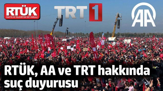 Yapılan açık hava toplantısı haber ve görüntülerine halkın haber alma hakkının gereği olarak AA ve TRT'nin yer veresi gerekirken, bu kuruluş görevleri görevde yetkiyi kötüye kullanma suçunu işleyerek, bu konudaki haber ve yayınlara yer vermemiştir. RTÜK bu konuda görevi alanındaki yayın kuruluşlarının yayınlarını inceleme ve denetlemekle görevli iken bu konuda görevini yerine getirmemiş, gerekli yayınları yapmayan yayın kuruluşlarına yaptırım uygulamamıştır.