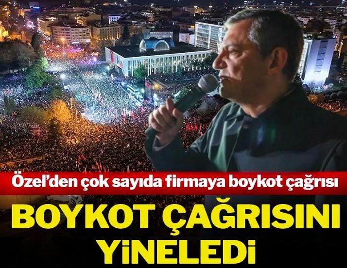CHP lideri Özgür Özel boykot çağrısını da paylaştı. Boykot çağrısı yapılan firmaların isimlerinin yarından itibaren boykotyap.com. adresinden takip edileceğini aktardı.