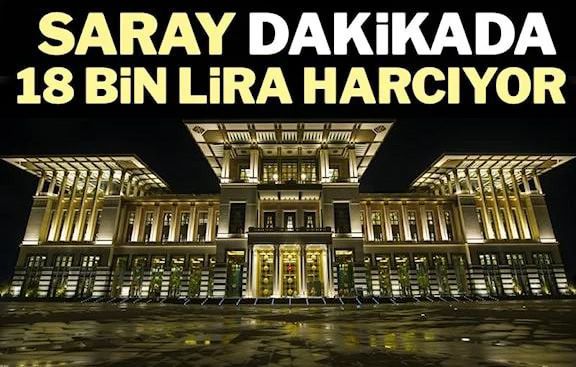 *Saray, Haziran ayında dakikada 15 bin, saatte 900 bin, günde 21 milyon, ayda 647 milyon lira harcıyordu. Temmuz ayında dakikada 18 bin yani 2.5 emekli maaşı, saatte 110 bin, günde 28 milyon, ayda 845 milyon lira harcıyor.