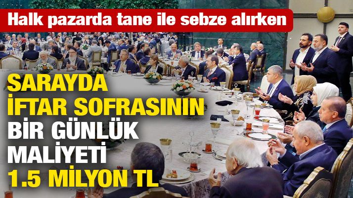 REKOR harcamalarıyla gündemden düşmeyen Cumhurbaşkanlığı Sarayı’nda ramazan için hazırlanan iftar sofralarının bir günlük maliyeti 1.5 milyon lirayı buldu. CHP milletvekili Gamze Taşcıer, “Bu rakam aylık bazda 45 milyon TL’ye ulaşacak. Sarayda 6 bin kişiye harcanan para ile kent lokantalarında 37 bin 500 kişiye dört çeşit sağlıklı yemek sunmak mümkün. Ancak iktidar, Kent Lokantaları’nın kapısına kilit vurmanın yollarını arıyor” dedi.