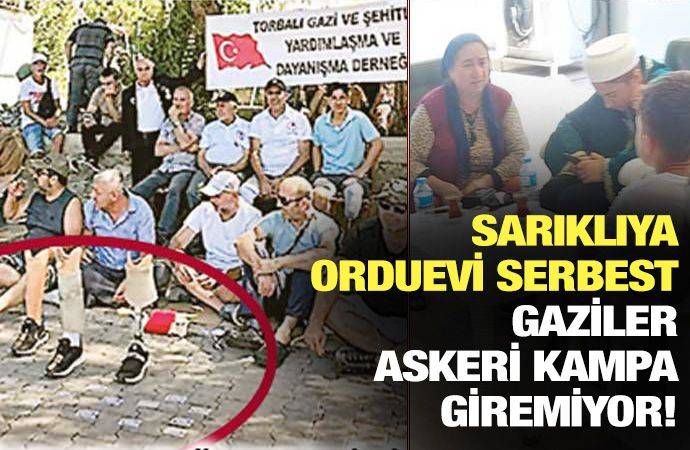 TSK İzmir Özdere Havacılık Kampı’nın önünde ise gazi erler içeri alınmamalarına tepki olarak oturma eylemi yaptı. Gaziler, protez bacak ve kollarını çıkararak oturdu.