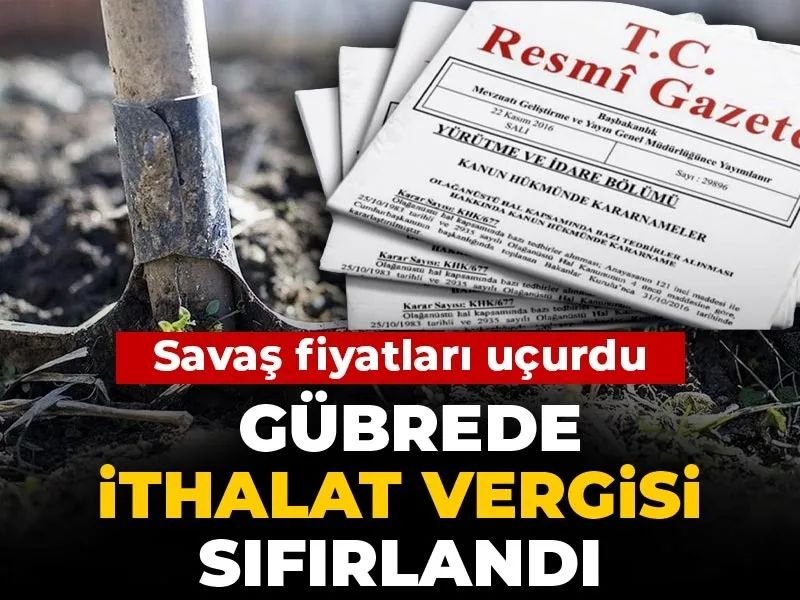 Bu gelişme üzerine Resmi Gazete’de yayımlanan kararla, üre ithalatında gümrük vergisi tamamen kaldırıldı.