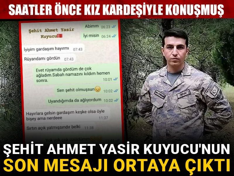 Bu yürek yakan mesaja karşı Şehit Ahmet Yasir Kuyucu'nun, kardeşini teselli ederek verdiği "Hayırlara gelsin gardaşım, keşke olsa öyle ama nerde. Üzülme gardaşım" yanıtı, son konuşmaları oldu.
