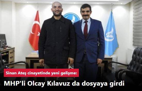 Ülkü Ocakları eski Genel Başkanı Sinan Ateş’in Ankara’nın göbeğinde suikast sonucu öldürülmesinde yeni bir gelişme yaşandı. Sinan Ateş cinayetinde MHP eski Mersin Milletvekili ve MHP lideri Devlet Bahçeli’nin danışmanı Olcay Kılavuz’un da şüpheliler arasında yer aldığı belirtildi.