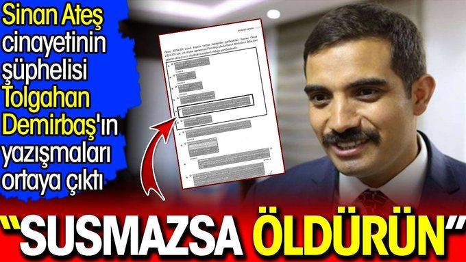 Eski Ülkü Ocakları Genel Başkanı Sinan Ateş'in Ankara'da suikast sonucu öldürülmesiyle ilgili soruşturmada, cinayetin azmettiricisi olduğu iddiasıyla tutuklanan Tolgahan Demirbaş'ın telefonundaki yazışmalar ortaya çıktı.