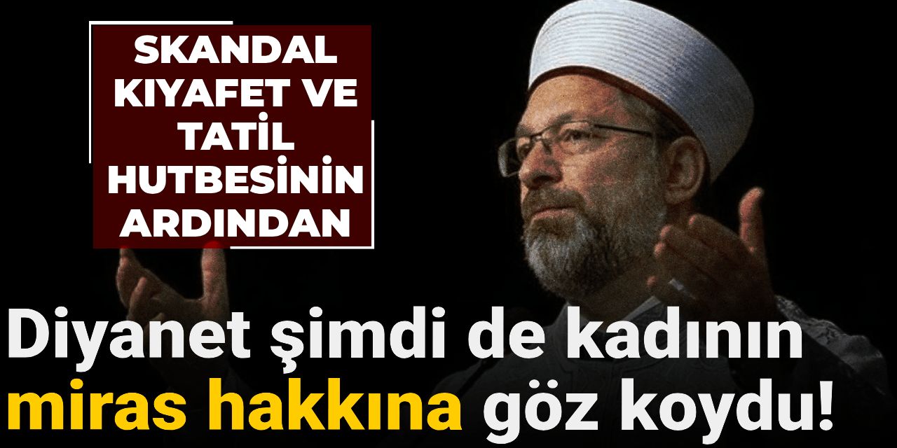 Son dönemde kadınların giyim kuşamı hakkında 'haram' fetvaları yayımlayan, tatil yapma biçimini belirleyen Diyanet, bu cuma da kadınların miras hakkı üzerinden yayımladığı hutbe ile gündeme geldi. Diyanet İşleri Başkanlığı'nın bu hafta camilerde okutulmak üzere 81 ile gönderdiği hutbenin başlığı, "Kul Hakkı Ateşten Gömlektir" şeklinde oldu.