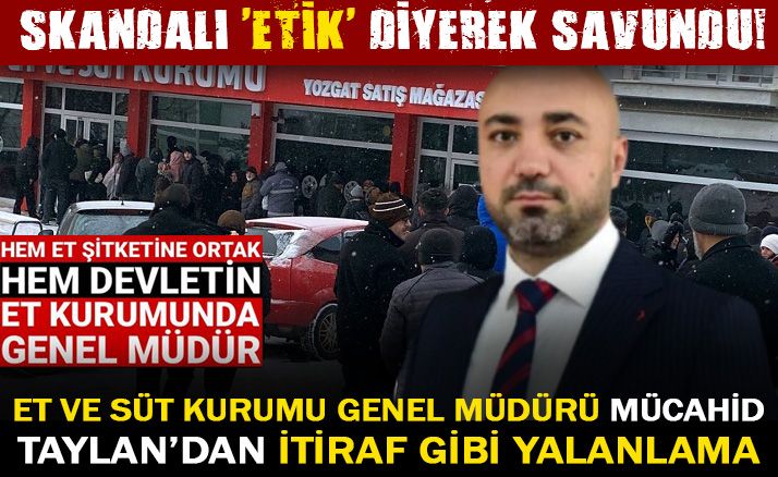 Et ve Süt Kurumu Genel Müdürü Mücahid Taylan, kamuoyundaki tepkiler üzerine bir açıklama yaptı. İtiraf niteliğindeki açıklamada Taylan, şirketinin, yönettiği kuruma et sattığı iddialarını yalanladı ancak et ticareti yapan şirketin ortağı olduğunu da doğrulamış oldu.