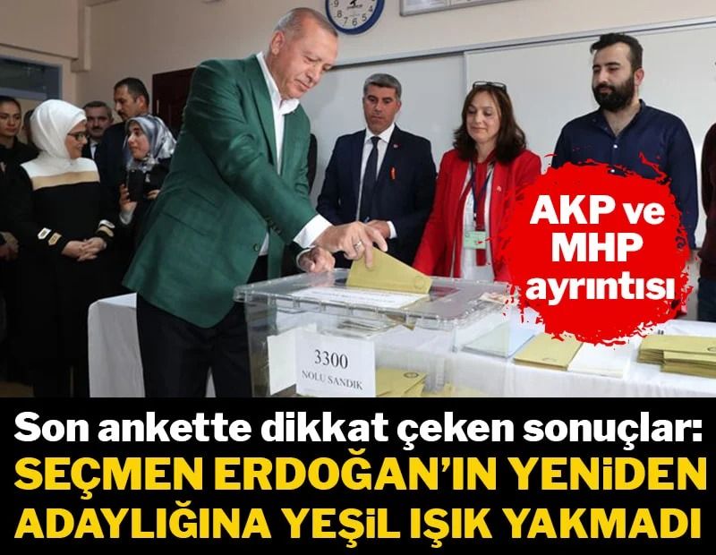 Ankette ayrıca, "Recep Tayyip Erdoğan Yeniden Cumhurbaşkanı Adayı Olmalı Mı?" sorusu yöneltilirken katılımcıların yüzde 37,2'si "aday olmalıdır" yanıtını verirken katılımcıların yüzde 57,7'si ise "Aday Olmamalıdır" yanıtını verdi. Katılımcıların yüzde 5,1'i ise, "Fikrim Yok" dedi.