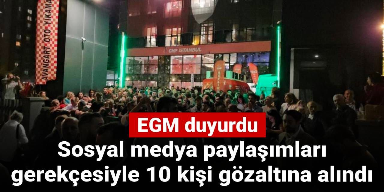 Gürsel Tekin'in kayyum olarak CHP İstanbul İl Başkanlığına atanması ve il başkanlığı binasına polis eşliğinde girmesi sırasında yaşananlar ile ilgili sosyal medya hesaplarından paylaşım yapan 10 kişi gözaltına alındı.