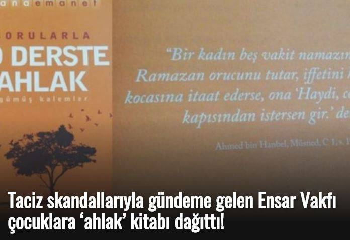 İdlib kampanyasının yanı sıra İstanbul Beykoz’da Ensar Vakfı’nın Din Öğretimi Genel Müdürlüğü ile yaptığı protokol çerçevesinde Sana Emanet bilgi yarışması için 40 Derste Ahlak kitabı dağıtıldı. Kitabın arka kapağında yazan cinsiyetçi ifade ise dikkat çekti: