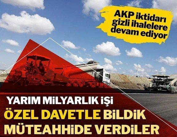 Sözcü'de yer alan habere göre, Ulaştırma ve Altyapı Bakanlığı Karayolları Genel Müdürlüğü, bir ihaleyi daha açık usül yerine kapalı kapılar arkasında yapmayı tercih etti. 559 milyon TL yaklaşık maliyet hesaplanan karayolu ihalesini kamuoyuna duyurmadan sessiz sedasız gerçekleştirdi.