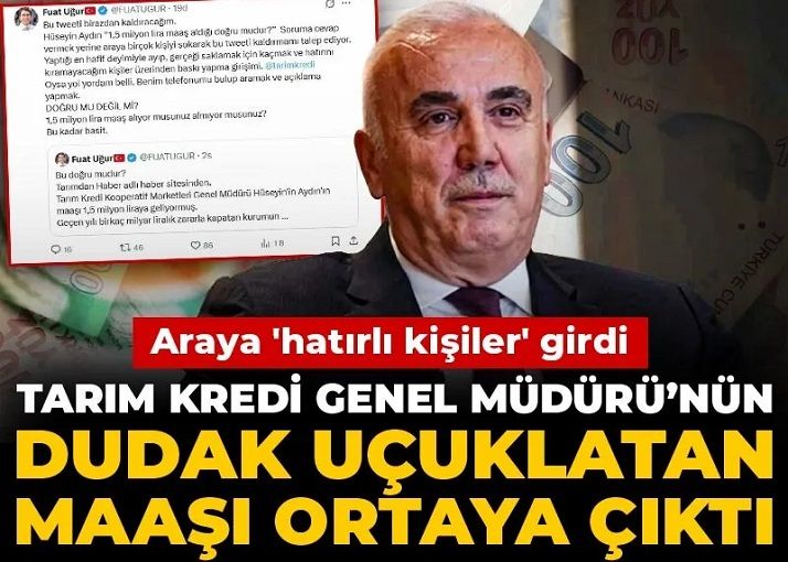 Tarım Kredi Kooperatifleri Genel Müdürü Hüseyin Aydın’ın aylık geliriyle ilgili ortaya iddialar,"baskı" ve "silinen tweet" tartışmasına dönüştü. İktidara en yakın gazeteciler arasında yer alan Fuat Uğur, sosyal medya hesabından Tarım Kredi Kooperatifleri Genel Müdürü Hüseyin Aydın’ın 1,5 milyon liralık aylık geliriyle ilgili soru sordu.