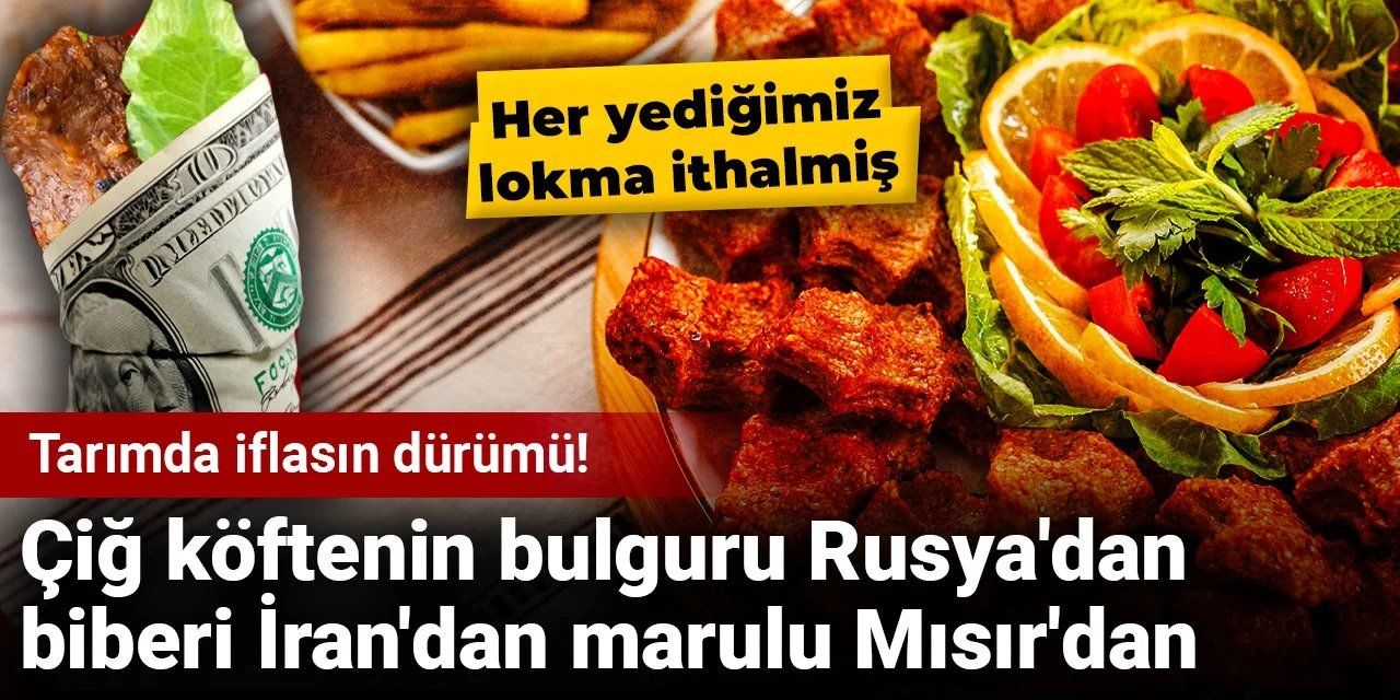 Dürümü 250 TL’ye kadar çıkan etsiz çiğ köftenin biberi İran’dan, marulu Mısır’dan geliyor. Ayçiçek yağı Ukrayna, Bosna Hersek, Tunus ve Makedonya’dan ithal edilirken, bulguru Rusya’dan getirilen buğdaydan üretiliyor.