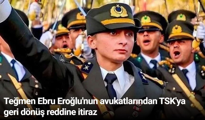 Kara Harp Okulu mezuniyet töreninde kılıç çatarak “Mustafa Kemal’in askerleriyiz” sloganı atıp, Subay Andı okudukları için ihraç edilen teğmenlerden Ebru Eroğlu’nun TSK’ya geri dönüş talebinin reddine avukatları tarafından itiraz edildi.