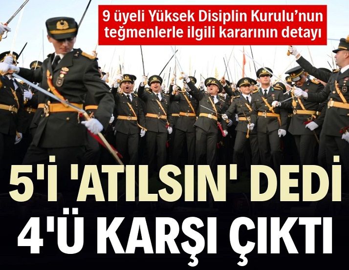 Kara Kuvvetleri Yüksek Disiplin Kurulu’nun 5 üyesi “ihraç” yönünde oy kullanırken 4 üye ise karara karşı çıktı. 4 üyenin karara muhalefet etmesinin teğmenlerin adalet arayışı sürecine olumlu yönde katkı vermesi bekleniyor. Teğmenlerin 60 gün içinde İdare Mahkemesi’nde dava açma hakkı bulunuyor.