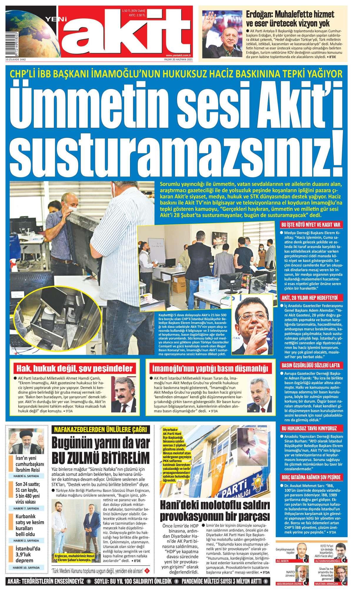 Akit, yaşananları “İmamoğlu Haciz Baskınıyla Akit TV’yi Susturmak İstedi” başlığıyla haberleştirdi. Haciz kapsamında Akit TV’nin çeşitli eşyalarına el konuldu.