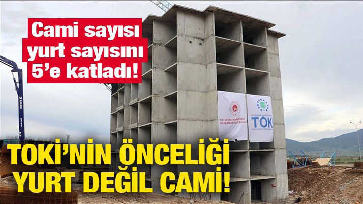 İktidarın, “81 ile üniversite” politikası nedeniyle yükseköğretimde derinleşen barınma krizine karşın 220 öğrenci yurdu yapan TOKİ’nin, buna karşın 1179 caminin yapımını tamamladığı bildirildi. TOKİ’nin 20032025 döneminde yaptığı sosyal donatıların türlerine göre dağılımı, şöyle: