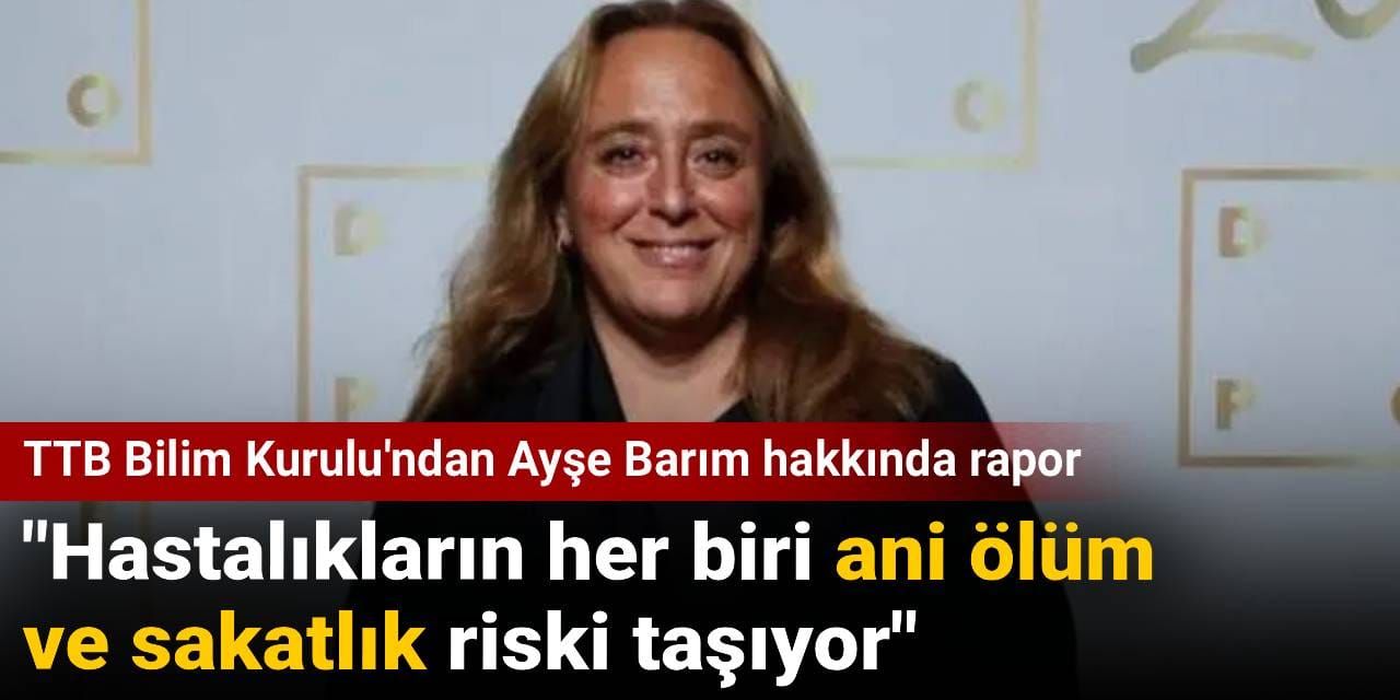 Türk Tabipleri Birliği (TTB), 27 Ocak tarihinden bu yana cezaevinde tutulan ünlü menajer Ayşe barım ile ilgili 19 sayfalık kapsamlı görüş raporunu ve 16 sayfalık hukuki değerlendirmesini paylaştı.