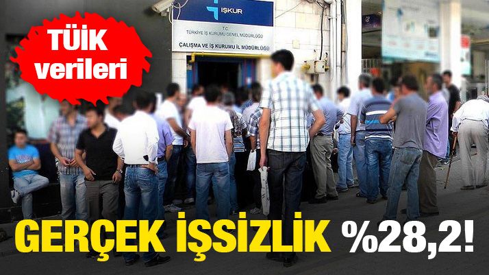 Türkiye İstatistik Kurumu'nun (TÜİK) verilerine göre mevsim etkisinden arındırılmış atıl işgücü (gerçek işsizlik) oranı %28,2 oldu.