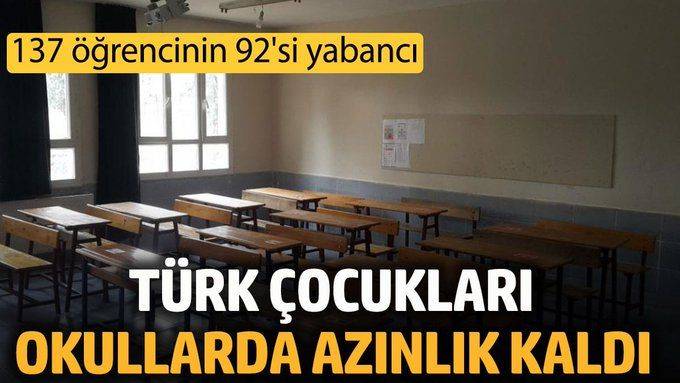 Şehit Onur Doğan İlkokulu’ndaki birinci sınıf listelerini yayınlayan Aslan, toplam 137 öğrencisinin 92’sinin yabancı, 45’inin Türk olduğunu vurgulayarak “Türkiye Cumhuriyeti’nin evlatları öz yurdunda azınlık konumuna düştü. Devlet okulları yabancıların işgali altında” ifadelerini kullandı.