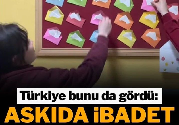 Okullardaki ‘Askıda ibadet’ panolarında öğrenciler için ibadet istekleri yer yer alıyor. Askıdaki ibadet kartlarında “10 Fatiha okuyalım. Bir peygamber kıssası öğrenelim. Teravih namazına gidelim. Bir sahabenin hayatını öğrenelim. Ramazan’la ilgili bilmece öğrenelim. Ramazan’a ulaştığın için şükret ve vakit namazı kıl” gibi notlar bulunuyor. Uygulamada, öğrenciler, çektikleri kartlarda yazılı ibadetleri yerine getiriyor.