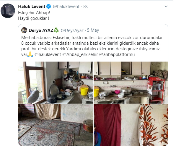 Merhaba,burasi Eskisehir, Iraklı multeci bir ailenin evi,cok zor durumdalar 8 cocuk var,biz arkadaslar arasinda bazi eksiklerini giderdik ancak daha prof. bir destek gerekli.Yardimi olabilecekler icin desteginize ihtiyacimiz var.