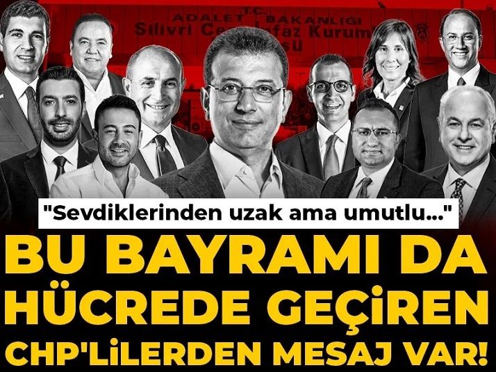 Tutuklu bulunan CHP’li belediye başkanları ve siyasetçiler, Ramazan Bayramı dolayısıyla sosyal medya hesaplarından mesajlar yayımladı. Paylaşımlarda özgürlük, adalet ve bayramı sevdiklerinden uzak geçirmenin hüznü çıktı...