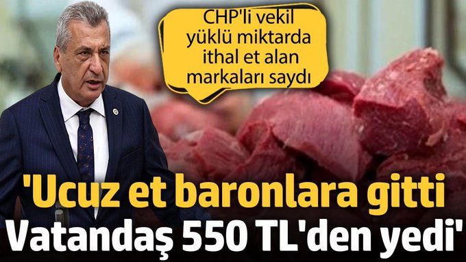 CHP Gaziantep Milletvekili Hasan Öztürkmen, Et ve Süt Kurumu'nun ithal etleri üzerinden büyük bir vurgun çarkı işliyor” dedi. Öztürkmen, ETS'dan yüklü miktarda ithal et alan market ve işletmelerin isimlerini saydı.