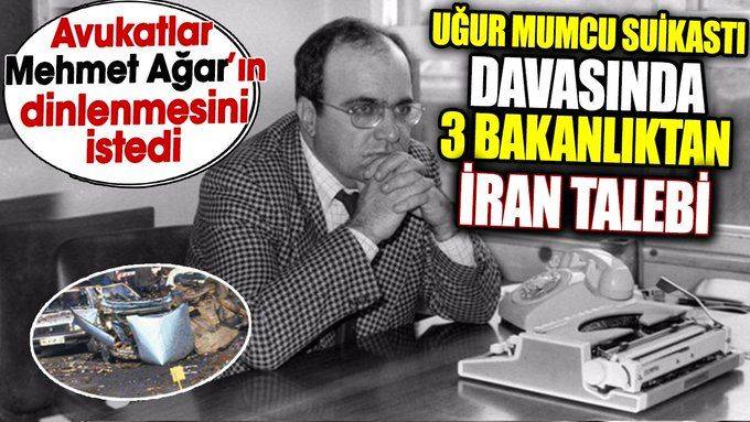 Araştırmacı gazeteciyazar Uğur Mumcu suikastının sanıklarından olan Oğuz Demir’in gıyaben yargılandığı davanın duruşması Ankara 5. Ağır Ceza Mahkemesi’nde görüldü. Mahkeme, İçişleri Bakanlığı, Dışişleri Bakanlığı ve Adalet Bakanlığı’na; Uğur Mumcu cinayetinin aydınlatılması amacıyla o dönemde İran ile ortak bir komisyon kurulup kurulmadığının öğrenilmesine ilişkin yazı yazılmasını talep etti.