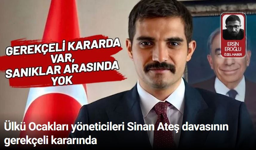 Eski Ülkü Ocakları Genel Başkanı Sinan Ateş cinayetine ilişkin görülen davada gerekçeli karar açıklandı. Gerekçeli kararda yargılama aşamasında sanıklar arasında yer almayan Ülkü Ocakları Genel Başkanı Ahmet Yiğit Yıldırım, Ülkü Ocakları Genel Başkan Yardımcısı Burak Kılıç, eski Ülkü Ocakları yöneticileri Suat Yılmazobu ve Gürsel Horat’ın isimlerinin olması dikkat çekti.