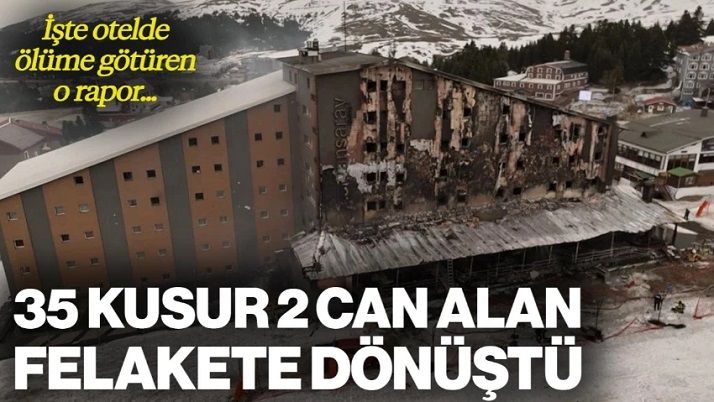 Uludağ'da milli kayakçı ile kayak hocası babasına mezar olan oteldeki 35 maddelik kusur raporuna ulaşıldı. Bursa Büyükşehir Belediyesi İtfaiye Daire Başkanlığı tarafından yapılan denetimlerde otelin mimari yangın tahliyesi açısından 17 ayrı madde kusuru ve eksiği olduğu, yangın tesisat, söndürme ve mekanik sistemleri bakımından 10 maddeden kusurlu ve eksiğinin olduğu, yangın algılama ve elektrik tesisatları açısından da 8 madde kusuru ve eksiğinin olduğu belirtildi. Otel yönetimi eksiklerin 1 hafta içerisinde giderildiğini iddia etse de yangının ardından yapılan ilk incelemede otelin yangın alarmının çalışmadığı, yangın söndürme sprinter sistemin devreye girmediği ortaya çıktı.